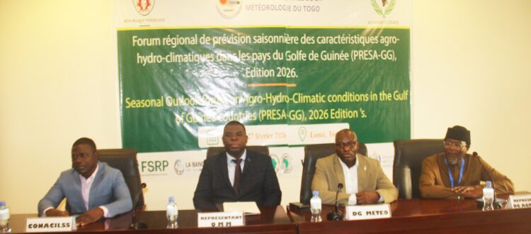 Les travaux de l’atelier régional de co-production des prévisions saisonnières des caractéristiques agro-hydro-climatiques ont démarré ce lundi 23 février 2026 à Lomé, au profit des pays du Golfe de Guinée, à savoir le Bénin, la Côte d’Ivoire, le Ghana, le Nigéria et le Togo.